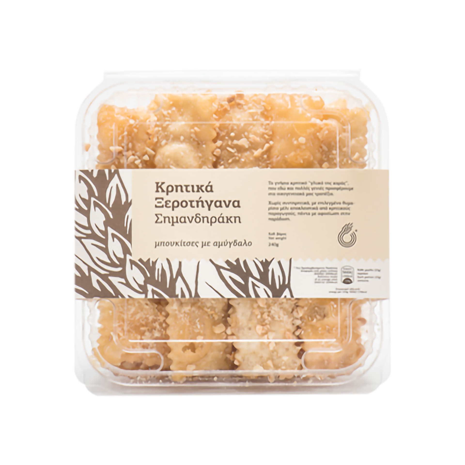 Experience the authentic taste of Crete with Simantiraki Xerotigana. Hand-rolled, crispy pastry ribbons soaked in pure Greek honey and topped with almonds. A timeless festive treat.