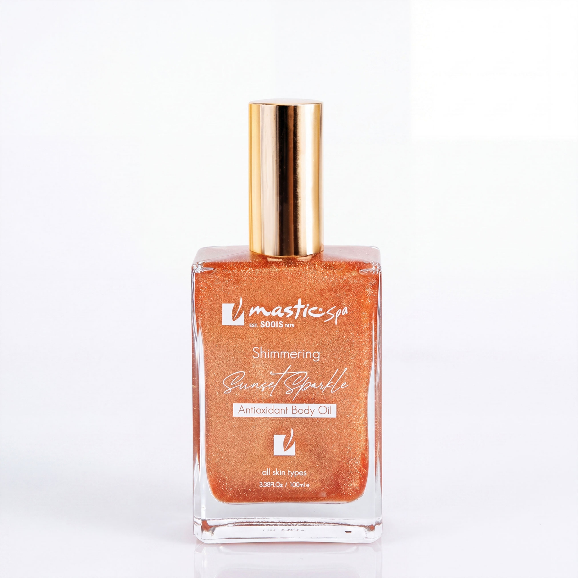 મેસ્ટિક સ્પા ગોલ્ડન એલિક્સિર સાથે તેજસ્વી ત્વચાનો અનુભવ કરો. આ ડ્રાય બોડી ઓઇલ ઊંડા હાઇડ્રેશન માટે ચિઓસ મેસ્ટિક અને બદામ તેલનું મિશ્રણ કરે છે અને સૂક્ષ્મ ચમકદાર ફિનિશ આપે છે.