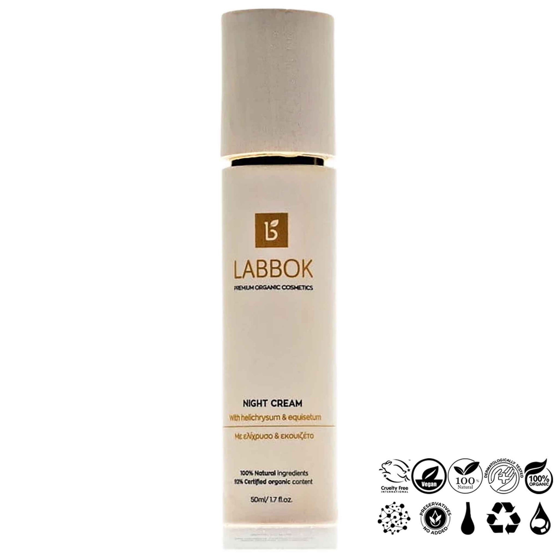 The Organic Night Cream with anti-aging action nourishes and moisturizes the most demanding and dry skin. The 3 main ingredients of the Night Cream are sea buckthorn, equisetum and helichrysum. It has a rich texture that is easily absorbed. It can be combined with the serum or the hyaluronic acid serum. Suitable for all skin types and ideal for ages 40+ ( or younger but with very dehydrated skin.) It does not contain perfumes or essential oils.