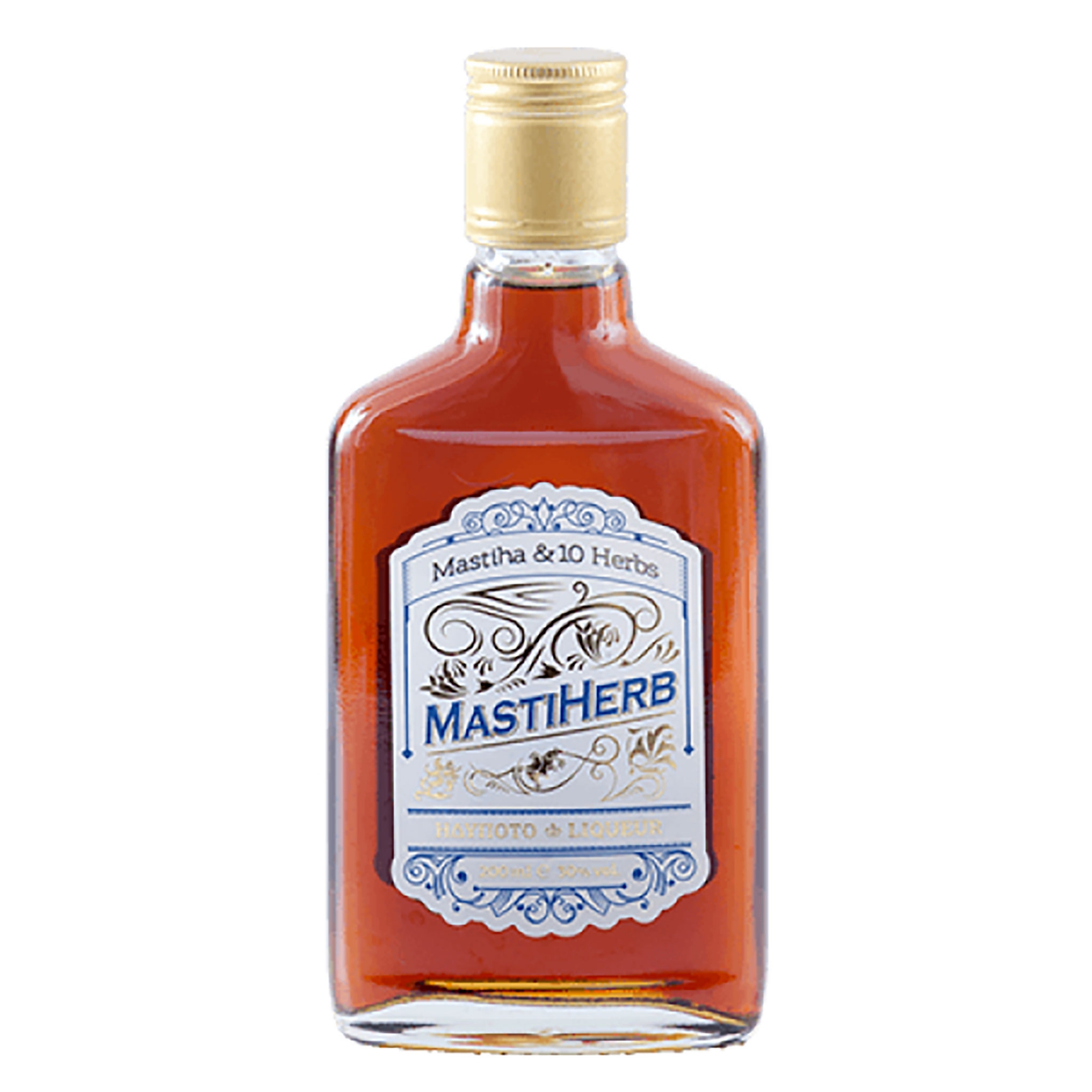 Discover the unique flavor of Mastiha Liqueur with 10 herbs. This herbal spirit (30% Vol, 200ml) offers a delightful taste experience. Perfect for sipping or cocktails!