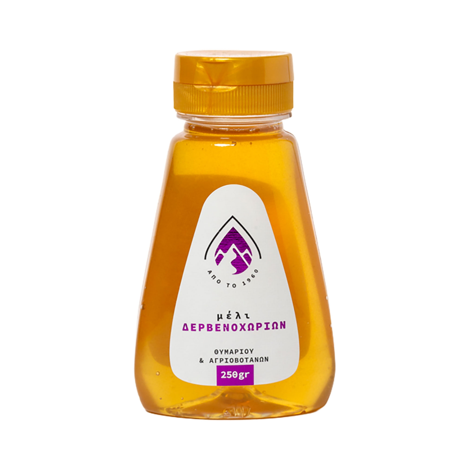 Discover Mourikis Organic Squeeze Thyme & Wild Herbs Honey (250g), a natural sweetener rich in flavor and health benefits. Perfect for tea, desserts, and more!