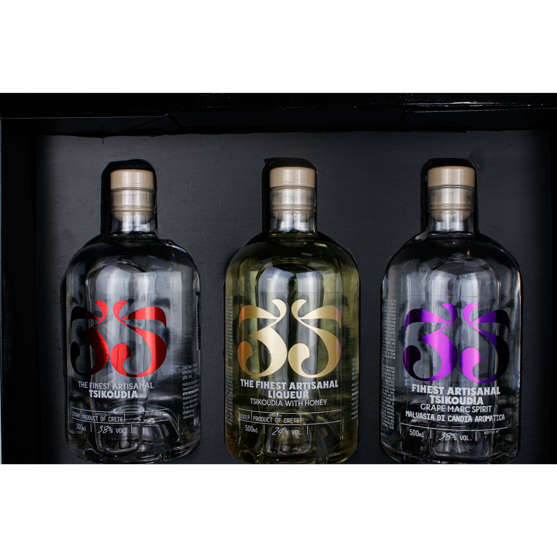 Gift a taste of Greece with our premium Cretan Tsikoudia (Raki) gift set! This collection features 3 x 500ml bottles of authentic, artisanal Tsikoudia, distilled from the heart of Crete using traditional methods.